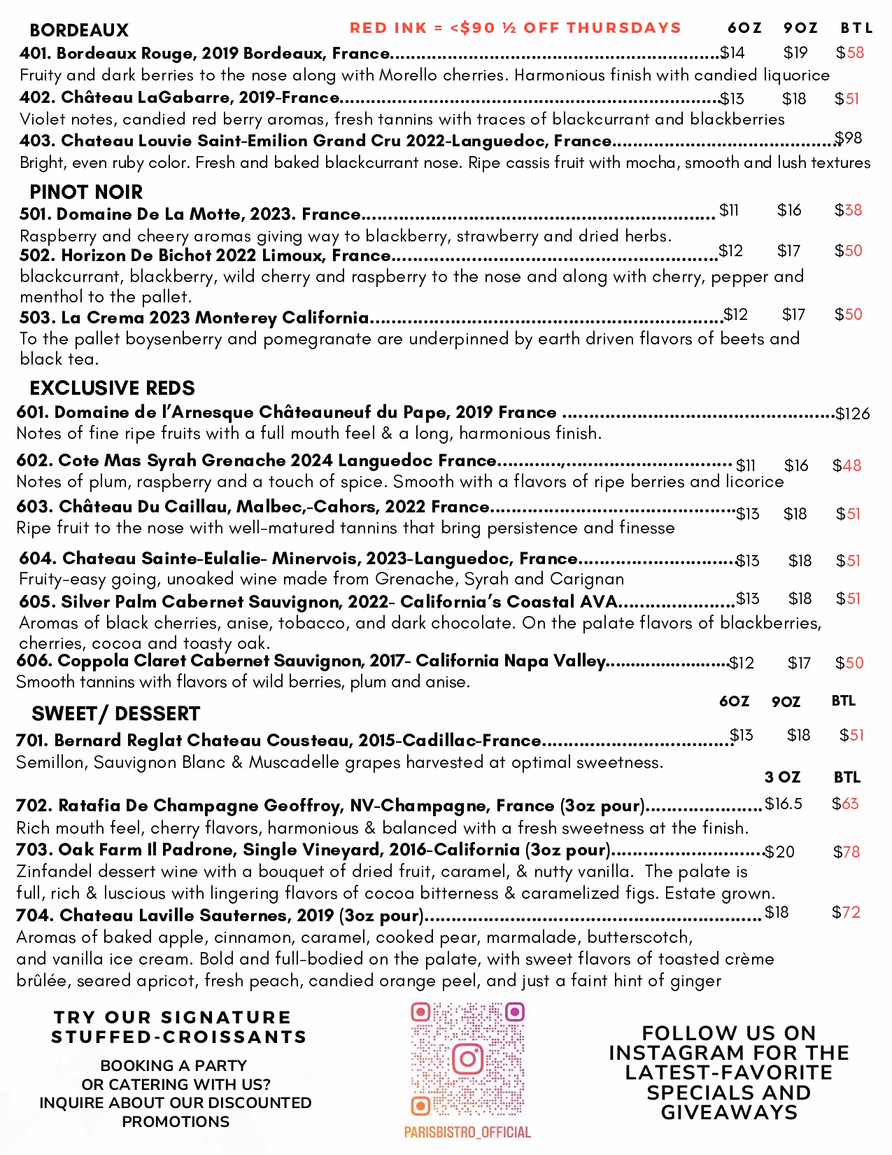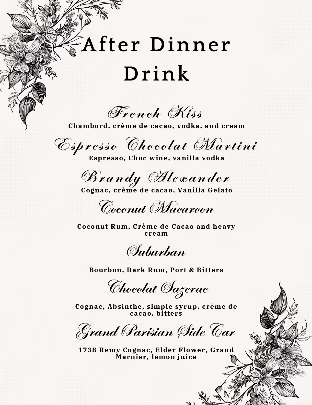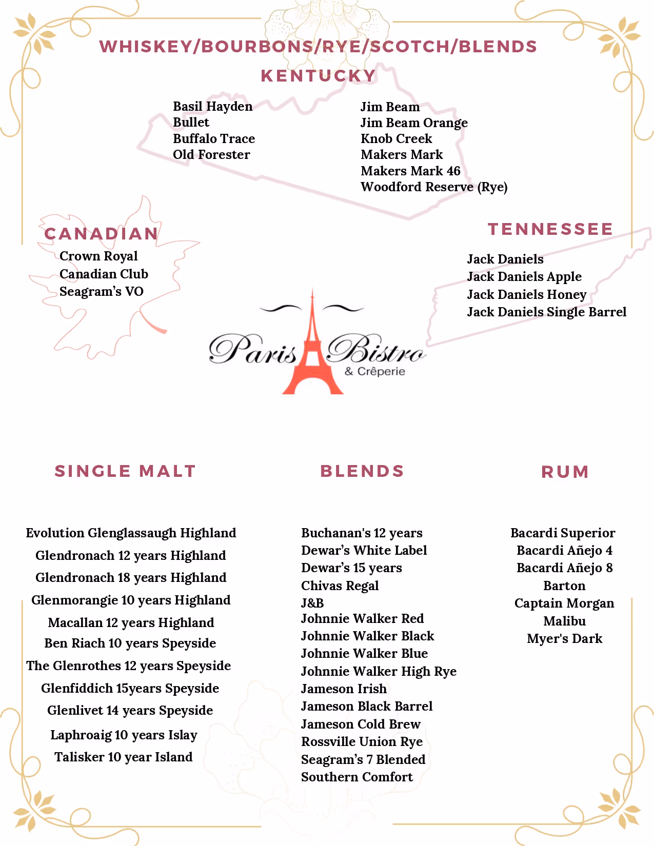 Whether you're joining us for a cozy breakfast, a leisurely lunch, or a memorable dinner, Paris Bistro offers French-inspired cuisine and a vibrant bar with refreshing drinks. With convenient online ordering, you can enjoy your favorites at home with takeout or delivery. From casual outings to special celebrations, Paris Bistro is your go-to destination—follow us on Facebook for the latest specials, events, and updates.